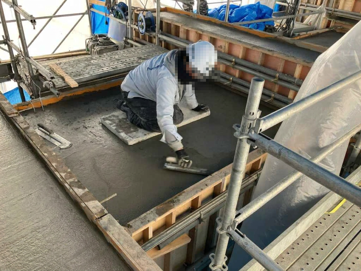 コンクリートの表面を左官仕上げして、一連の作業は終了です!!