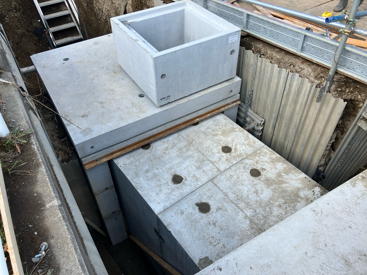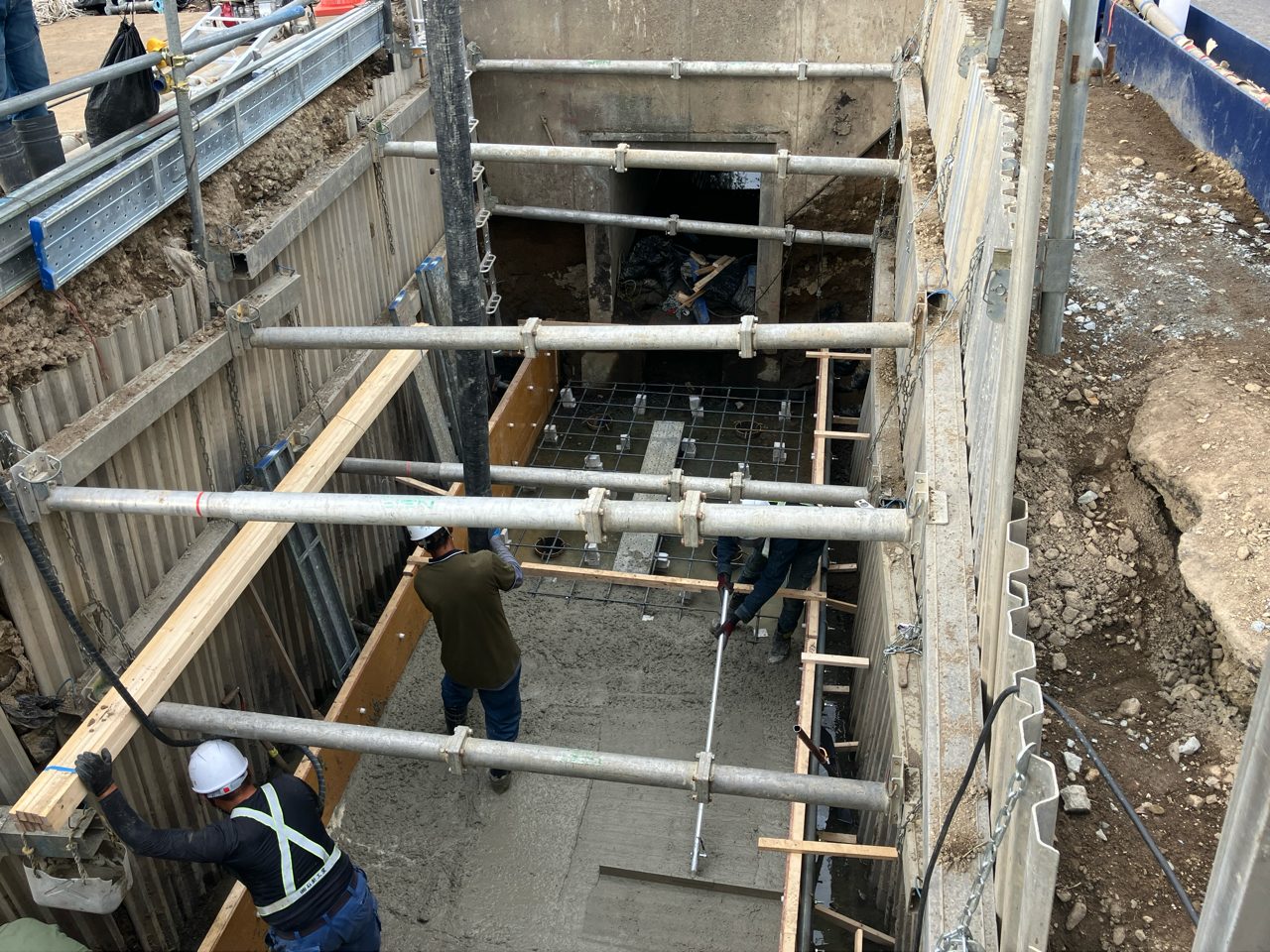 今回は現道拡幅に伴なって水路を地中化するため、地下排水構造物を設置していきます。