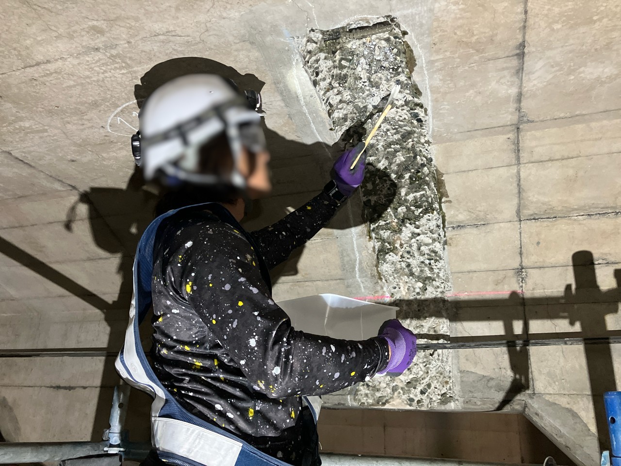 斫りを終えたら、露出した鉄筋に防錆処理(防錆ペースト塗布)を行います!