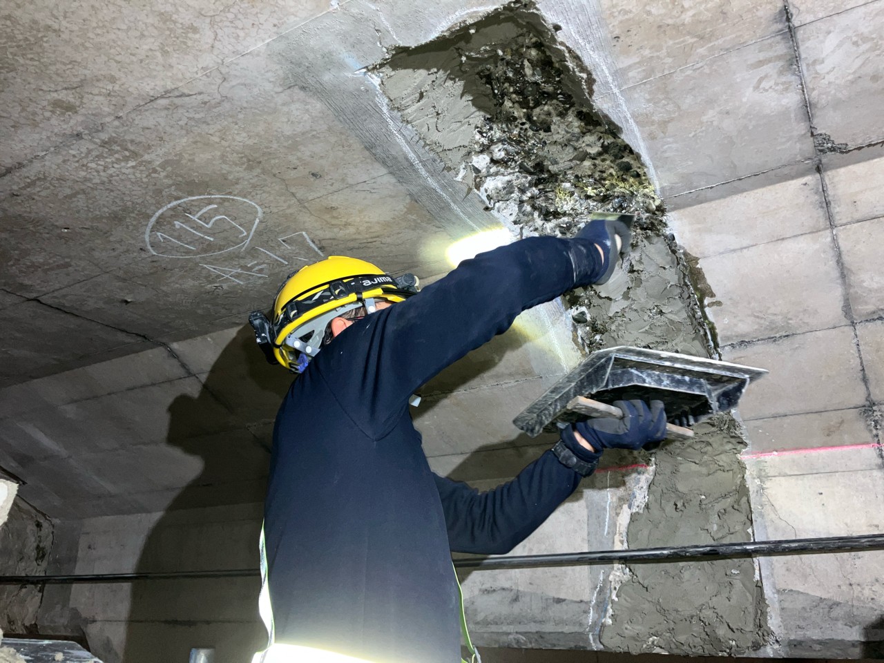 傷んだ断面部分を削り取り、新しい材料(モルタル)で充填することで、もともとの形状・強度に補強する!