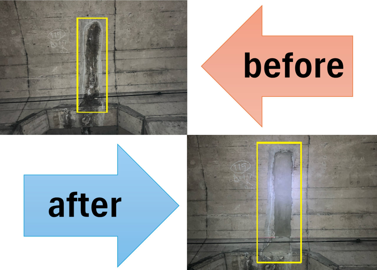 なんということでしょう、あれほど傷んでいたコンクリート断面が見違えるほど綺麗になり、新たな姿に生まれ変わりました!
