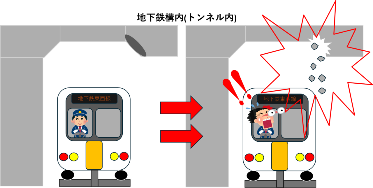 地下鉄の走行中に、コンクリートが剥がれ落ちてきて大惨事に!😱😱😱