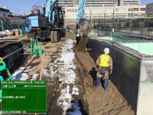 当現場は既存のグラウンドに新たに校舎を建設する工事です。